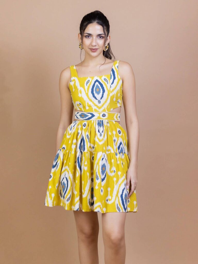 Yellow Ikat Cotton Waist-Cut Mini Dress Original price was: ₹1,299.00.Current price is: ₹1,099.00.